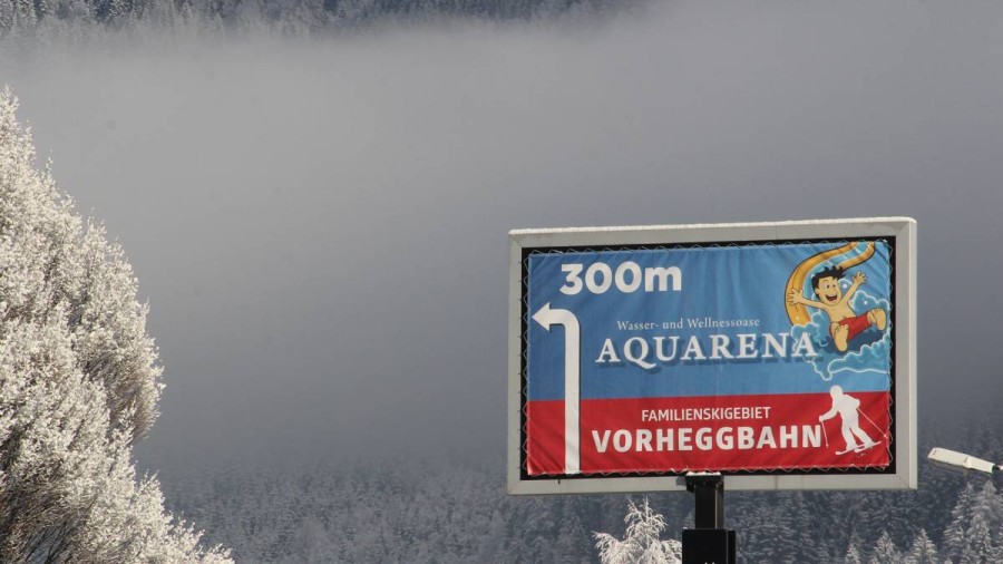 deren Beitrag die Anbringung einer Werbefolie während der Wintermonate für das Skigebiet und die Aquarena ist – jeden Winter und kostenlos wohlgemerkt.